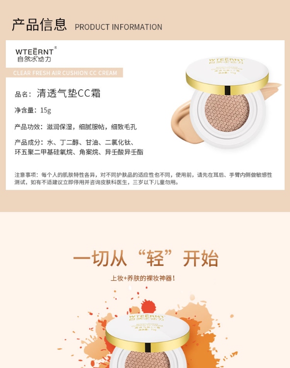 > 清透气垫CC霜遮瑕霜oem品牌定制